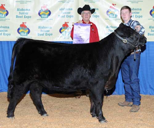 | Congrats to Zachary McCord for winning the Grand Champion AOB, 2013 Alabama State Jr. Beef Expo. This nice heifer is out of DHVO Deuce and one of our donors HMMP Liberty Bell 784T and was raised in our program. Keep up the good work Zach! |